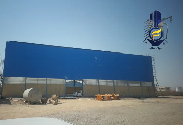 در این پروژه که مربوط به شرکت پولاد ذوب کامیاب سپاهان می باشد، به دلیل گرمایش بالای کوره های ذوب در داخل سوله، نیازی به ساندویچ پانل نبود.